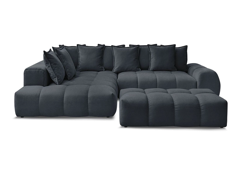 Ecksofa mit Hocker BOBOCHIC EVEREST Stoff mit Textur dunkelblau