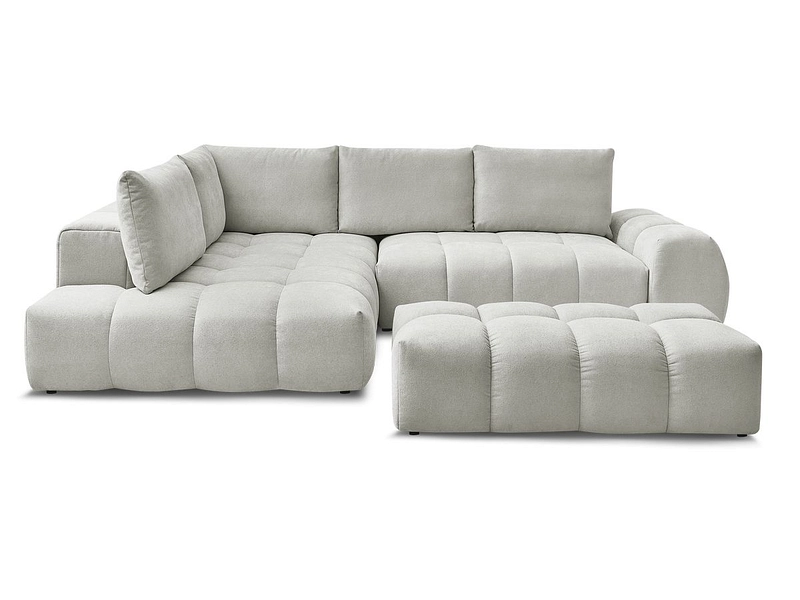 Ecksofa mit Hocker BOBOCHIC EVEREST Stoff mit Textur hellgrau