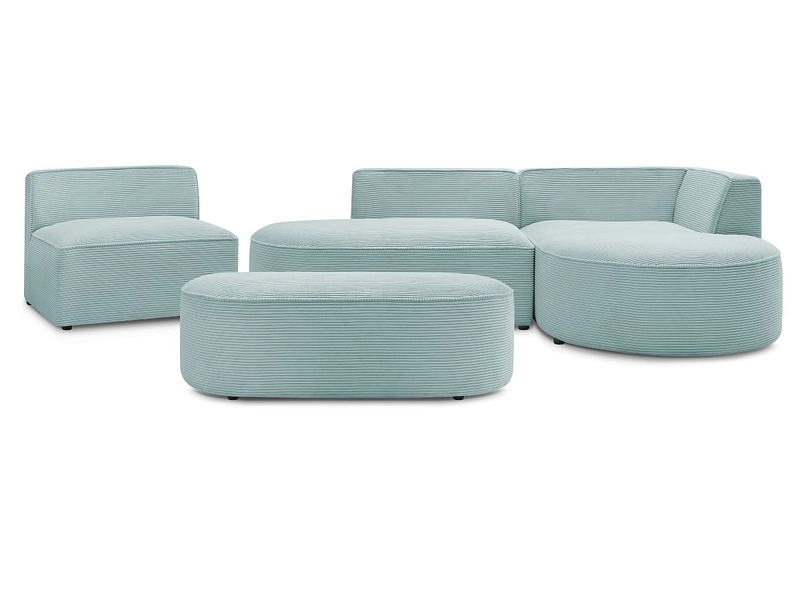 Ecksofa mit Hocker BOBOCHIC ROUSSEAU Cord-Stoff hellblau