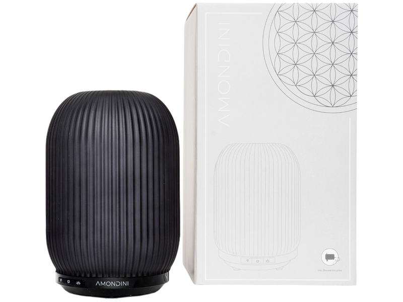Der AMONDINI Elektrischer Aroma Diffusor Sensuelle 150 L bietet dir dank seiner Vernebelungsfunktion eine entspannende Atmosphäre und ein optimales Wohlbefinden. Dieser Aromadiffusor ist mit ätherischen Ölen kompatibel, sodass du dein Dufterlebnis individuell gestalten kannst. Nutze den eingebauten Timer, um deine Entspannungssitzungen zu programmieren. Er ist mit mehrfarbiger LED-Technologie ausgestattet und bietet dir 7 Farben zur Auswahl, wobei du deine Lieblingsfarbe einfrieren kannst. Der schwarze Diffusor ist leise und besteht aus Glas und Karton. Entdecke auch die ätherischen Öle der Marke AMONDINI für ein komplettes Erlebnis. Mit seinem Modell Sensuelle wird er dein Zuhause in eine Oase der Ruhe verwandeln.