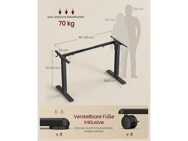- Verstellbare Höhe von 72 bis 120 cm