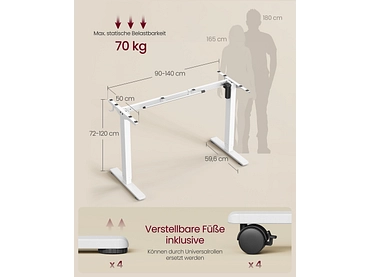 - Verstellbares Fußkreuz für einen Schreibtisch mit einer Länge von 90 bis 140 cm