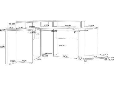 Gaming Schreibtisch GEEK 160x160x91.1cm schwarz