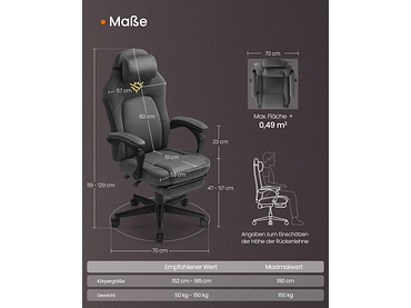 - Rückenlehne um 135° neigbar und Kopfkissen