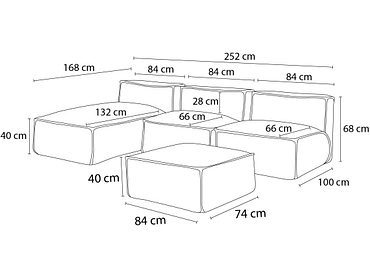 Entdecke das Gartenset BOBOCHIC BIARRITZ aus beige meliertem Stoff, ein modulierbarer Raum, der für deinen Komfort im Freien entworfen wurde. Diese Sitzgruppe besteht aus zwei Chauffeuren, einer Meridian und einem Hocker und bietet flexible Gestaltungsmöglichkeiten nach deinen Wünschen. Geniesse den weichen Komfort dank der Füllung aus Polystyrolgranulat und Schaumstoffflocken. Der Stoff aus 100% Olefin ist wasserabweisend, antibakteriell und pflegeleicht. Ausserdem sind die Module mit einer wasserfesten Schutzplane überzogen, die einen optimalen Schutz vor Witterungseinflüssen gewährleistet. Masse der Wärmer: 84x100x68 cm, Meridian: 84x168x68 cm, Hocker: 84x74x40 cm.