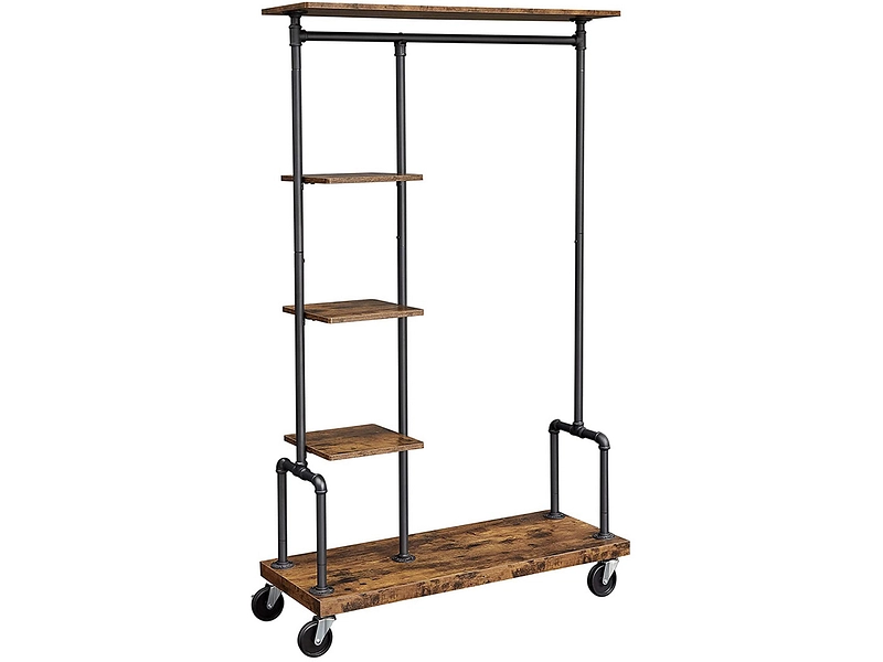 - Noch nie so schön: Industrielle Stahlrohre kombiniert mit rustikalen Spanplatten – diese Kombination prägt den Raum und diesen Kleiderständer, der alle Blicke auf sich zieht, während er Ihre Kleidung stilvoll in Szene setzt und ihr eine einzigartige Bühne bietet, auf der sie glänzen kann.