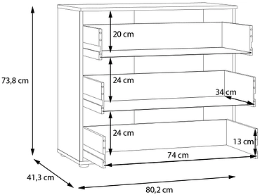 Die Kommode AMARA mit ihren 3 Schubladen bietet dir einen praktischen und eleganten Stauraum. Mit den Massen 41.3x80.2x73.8cm ist sie ideal, um den Platz in deinem Zimmer optimal zu nutzen. Die Farbe Sand verleiht ihr einen modernen Touch und lässt sich leicht in deine Einrichtung integrieren. Diese Kommode ist Teil eines Programms, so dass du deine Möbel aufeinander abstimmen kannst. Die Schubladen sind auf kugelgelagerten Metallschienen montiert, die ein sanftes Öffnen und Schliessen ermöglichen. Die dekorative Oberfläche sorgt für einen ästhetischen Touch. Das Gestell und die Front bestehen aus Spanplatte, die für Robustheit sorgt. Es wird empfohlen, den Schrank an der Wand zu befestigen (Material nicht im Lieferumfang enthalten), um die Sicherheit zu erhöhen. Das verwendete Holz ist PEFC Mixte-zertifiziert und garantiert eine nachhaltige Forstwirtschaft.