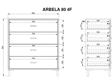 Kommode BALI 4 Schubladen 40x80x90cm eiche eiche