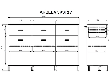 Kommode ARBELA 3 Türen 3 Schubladen 40x138x90cm eiche eiche