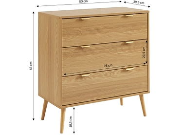 Kommode BAÏTA JEANNE 3 Schubladen 39.5x80x85cm eiche dekor