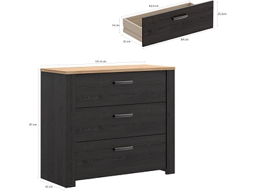 Kommode BOHOL 3 Schubladen 42x101.4x87cm schwarz dekor
