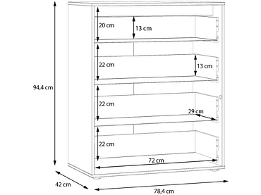 Kommode CANCHOA 4 Schubladen 42x78.4x94.4cm rot dekor
