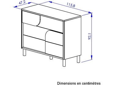 - Die beiden vorderen vertikalen Ecken der Kommode sind abgerundet, um das Design optisch abzurunden. Hergestellt in Frankreich.