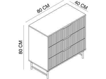 Entdecke die Kommode ONARIA, ein elegantes und praktisches Möbelstück mit den Maßen 40x80x80cm, das sich perfekt in deine Wohnung einfügen wird. In den drei Schubladen kannst du deine Sachen stilvoll organisieren, wobei jede Schublade bis zu 5 kg tragen kann. Bewundere die MDF-Front und das robuste Gestell aus Spanplatten und Metall, das eine lange Haltbarkeit garantiert. Die Füße und Griffe aus Metall sorgen für einen modernen und raffinierten Touch. Genieße das einzigartige Wellenfinish, das die Gesamtästhetik der Kommode in Grau und Schwarz hervorhebt. Diese Kommode, Teil eines Programms, zeichnet sich durch ihr geschmackvolles Design und ihre hochwertigen Materialien aus. Sie bietet dir optimalen Stauraum und verleiht deinem Zuhause einen modernen Touch.