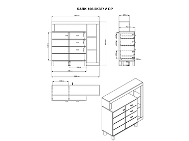 Kommode SARK 1 Tür 3 Schubladen 35x106x100.5cm artisan eiche melamin