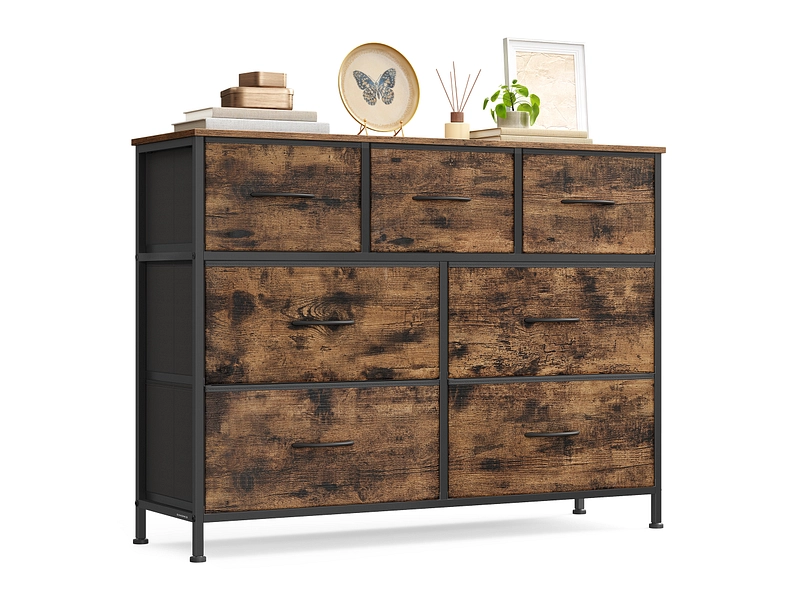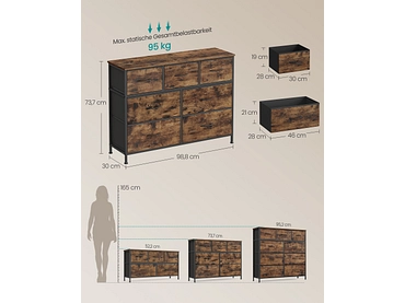 Kommode SONGMICS RUSTIK 7 Schubladen 30x98.8x73.7cm vintage braun rattan-druck