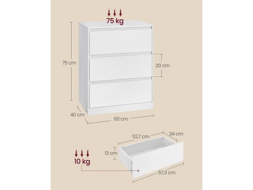 Kommode SONGMICS SADY 3 Schubladen 40x60x75cm weiss weiss