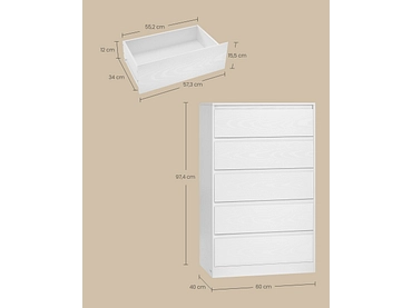 Kommode SONGMICS SADY 5 Schubladen 40x60x97.4cm weiss weiss