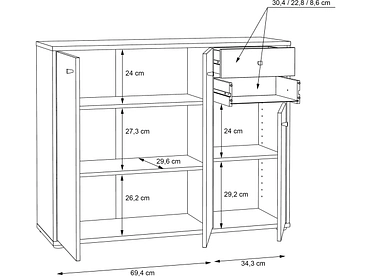 Kommode TEMPRA 2 3 Türen 2 Schubladen 34.8x108.8x85.5cm sand dekor