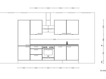 • Küchenzeile bestehend aus 1 Spülenunterschrank, 1 Herdumbauschrank, 1 Unterschrank, 3 Wandschränke, 1 Hochschrank