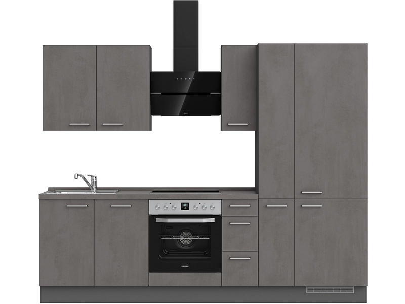 Komplette Küche MODUSET RIVA PREMIUM Beton Schiefergrau 60x270cm