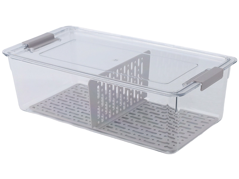 Entdecke die transparente LYAM-Aufbewahrungsdose, ein praktisches Accessoire für deine Küche. Ihre rechteckige Form nutzt den Platz in deinem Kühlschrank oder deinen Schränken optimal aus. Da sie aus durchsichtigem Kunststoff hergestellt ist, kannst du ihren Inhalt leicht erkennen. Die Box ist robust und langlebig und wird schnell zu einem unverzichtbaren Begleiter, um deine Lebensmittel länger frisch zu halten. Ihr einfaches und effizientes Design passt perfekt zu jedem Küchenstil. Sie ist ideal, um deine Reste zu organisieren, Mahlzeiten im Voraus zuzubereiten und dein Mittagessen mitzunehmen.