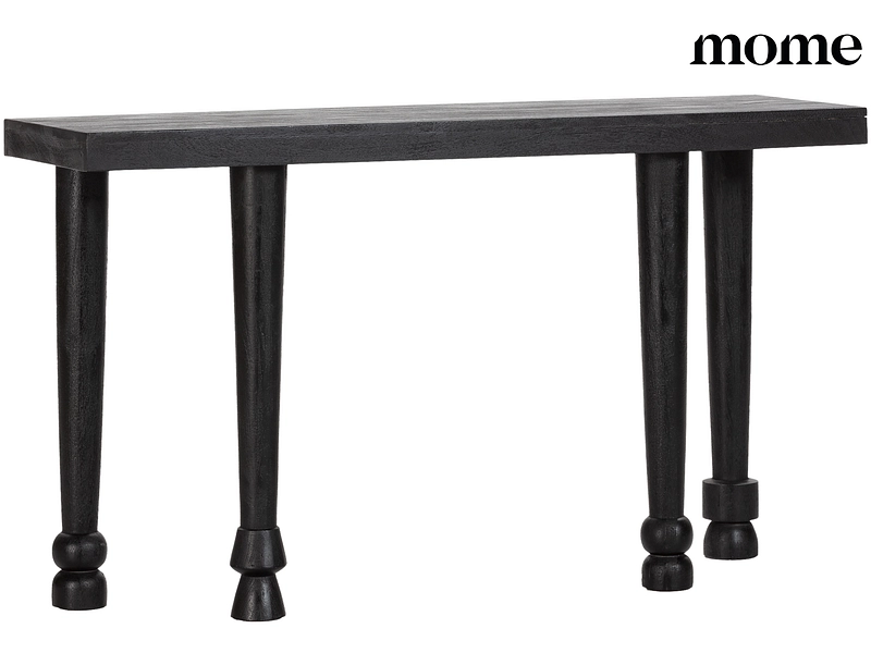 - Massives Mangoholz, stark, langlebig und natürlich elegant.Schwarze Oberfläche mit Antik-Effekt für eine tiefe, moderne und raffinierte Ausstrahlung.- Handgeschnitzte, gedrechselte Beine, jedes mit einer subtilen anderen Form, die einen unverwechselbaren handwerklichen Charme verleiht.- 130 cm Länge, ideal für Eingangsbereiche, Wohnzimmer, Flure oder kleine Räume, die dekoriert werden sollen, ohne aufzutragen..