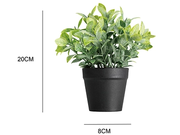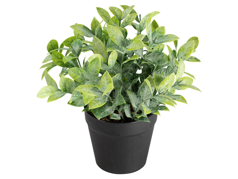 Die Kunstpflanze FLORIAN bringt einen grünen Touch in deine Wohnung, ohne dass du dich um die Pflege kümmern musst. Mit ihren Massen von 8,8x20cm lässt sie sich leicht in verschiedene Räume integrieren. Sein künstliches Laub in Grün- und Schwarztönen sorgt für eine realistische und dauerhafte Optik. Da die Pflanze aus robustem Kunststoff gefertigt ist, behält sie ihr makelloses Aussehen über die Zeit hinweg bei. Sie muss weder gegossen noch umgetopft werden und bleibt unter allen Umständen schön. Sie ist ideal für die Dekoration deines Wohnzimmers, Schlafzimmers oder Büros und schafft eine frische und einladende Atmosphäre. Geniesse die Schönheit der Natur in deinem Zuhause, ohne die Sorgen, die natürliche Pflanzen mit sich bringen. Das moderne, schlichte Design passt zu jedem Einrichtungsstil. Verleihe deinem Zuhause mit dieser pflegeleichten Dekopflanze einen Hauch von Farbe und Vitalität.