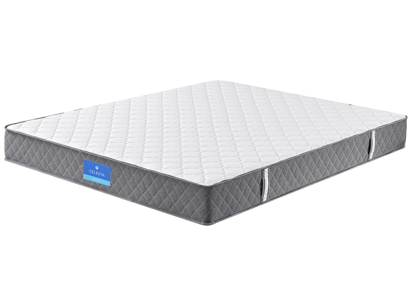 Die Matratze CELESTA SYMPHONY 180x200cm bietet dir dank ihrer Zusammensetzung aus Taschenfedern und Schaumstoff einen außergewöhnlichen Komfort. Du wirst den hautfreundlichen Bezug aus Polyester zu schätzen wissen, der in Weiß und Grau erhältlich ist. Diese Matratze wird mit einer Transportbox geliefert, die das Aufstellen der Matratze erleichtert. Genieße einen besseren Griff mit den praktischen seitlichen Griffen. Sie ist auch in anderen Größen erhältlich. Diese Matratze zeichnet sich durch ihre hochwertige Füllung aus, die Schaumstoff und Federn kombiniert, um eine optimale Unterstützung zu bieten. Sie kommt gerollt an und ist bereit, in dein Schlafzimmer gelegt zu werden.
