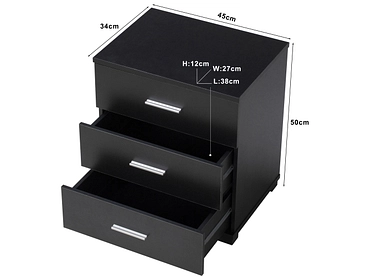 Nachttisch ELO 3 Schubladen 34x45x50cm schwarz dekor
