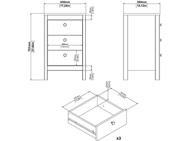 - Die Serie Madrid ist ästhetisch, einheitlich und harmonisch dank ihres modernen, erfrischenden und klaren Designs. Die 3 Schubladen auf Metallschienen bieten Ihnen den nötigen Stauraum..