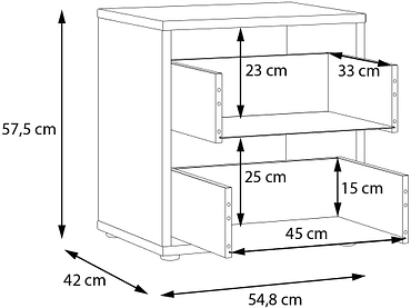Nachttisch RANKIN 2 Schubladen 54.6x42x56.4cm sand dekor / matt