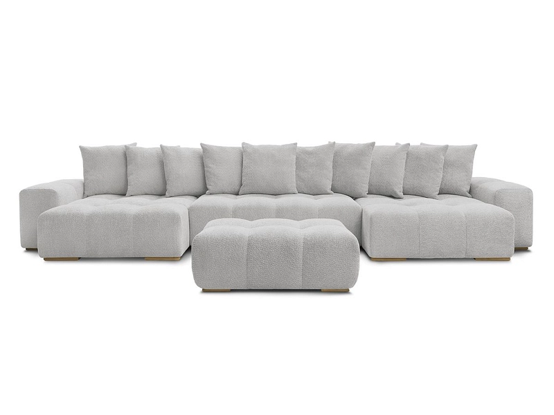 Panorama-Ecksofa mit Hocker BOBOCHIC ANAKIN Boucle-Stoff hellgrau