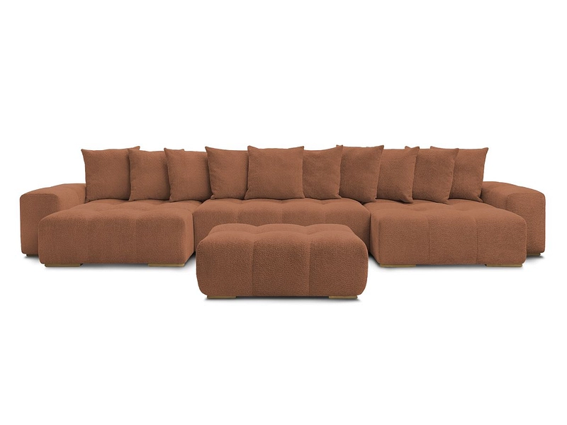 Panorama-Ecksofa mit Hocker BOBOCHIC ANAKIN Boucle-Stoff orange