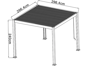 - UV- und witterungsbeständige Aluminiumstruktur, Aufstellfläche: 9 m2.