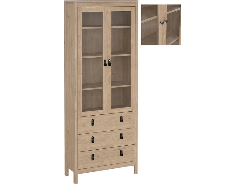 - Die Serie Madrid ist ästhetisch, einheitlich und harmonisch dank des modernen, erfrischenden und schlichten Designs. Die 3 Schubladen auf Metallschienen sowie die 3 Regale hinter den 2 Glastüren bieten Ihnen den nötigen Stauraum.
