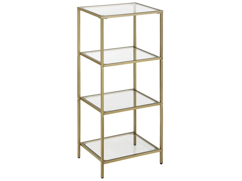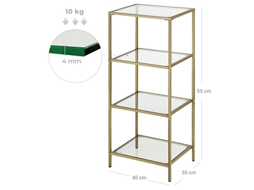 - Mit ihrem transparenten Glas und dem minimalistischen goldenen Rahmen hat dieses 4-teilige Regal ein schlichtes und transparentes Design, das Ihnen ermöglicht, Ihre Pflanzen, Bücher und Sammlungen besser zur Geltung zu bringen.