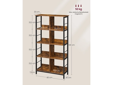 SONGMICS Regal RUSTIK 80x33x149cm spanplatte melamin
