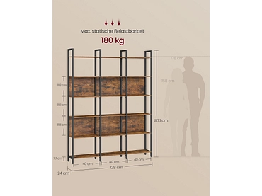 SONGMICS Regal RUSTIK 128x24x187.1cm spanplatte melamin