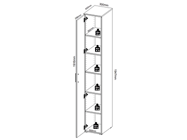 Aufbewahrungsschrank MULTI 1 Tür 40x30x195cm hellgrau