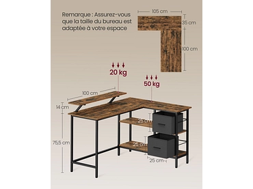Schreibtisch SONGMICS RUSTIK 105x135x89.5cm braun