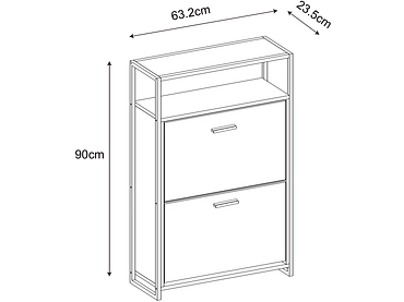 Der OSTUNI-Schuhschrank ist perfekt, um deine Schuhe zu organisieren. Mit seinen 2 Klappen bietet er Platz für bis zu 8 Paare. Seine Struktur und die Füsse aus Metall sorgen für eine hohe Robustheit. Du kannst ihn für mehr Stabilität ganz einfach an der Wand befestigen. Die Kunststoffgriffe sind praktisch und unauffällig. Sein Design in Eiche und Schwarz verleiht deinem Eingangsbereich einen modernen Touch. Jedes Regal trägt bis zu 3 kg, und das oberste Regal kann bis zu 10 kg tragen. Hergestellt aus Spanplatte und Metall, vereint dieses Möbelstück Ästhetik und Funktionalität.