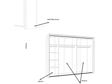 - Ausstattung inklusive: Passepartoutrahmen, LED-Beleuchtung, 7 Einlegeböden und zwei Kleiderstangen