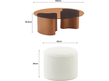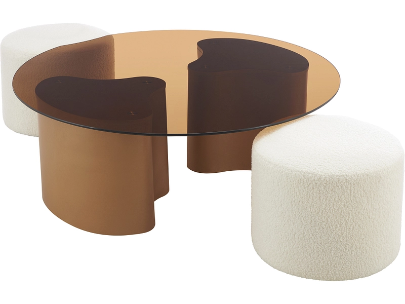 Set aus Couchtisch und 2 Hockern AMBREA 105x105x36.5cm braun