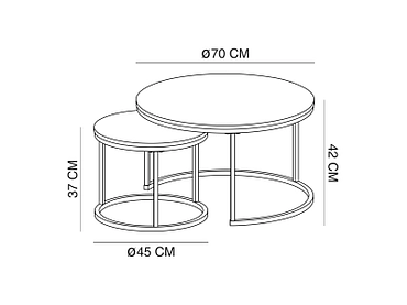 Das Couchtisch-Set SHOWTIME wird deine Wohnung mit seinem modernen Design verschönern. Geniesse seine Masse von 70x70x42cm und den zweiten Tisch von 40x40x37cm, die sich ideal an deinen Raum anpassen lassen. Sein mattschwarzes Metallgestell sorgt für einen Hauch von Eleganz, während die MDF-Tischplatte eine angenehme Oberfläche bietet. Die schwarze Farbe und die Oberfläche mit natürlichem Eschenholzeffekt der Tischplatte fügen sich leicht in jede Art von Einrichtung ein. Die runden Metallbeine mit ihrer gepuderten Oberfläche sorgen für eine perfekte Stabilität. Verschiebe deine beiden Tische je nach Bedarf und Einrichtung deines Wohnzimmers.