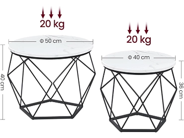 - Diese vielseitigen Beistelltische können auf vielfältige Weise eingesetzt werden. Zusammen für ein harmonisches Bild im Wohnzimmer oder einzeln: einer neben dem Sofa und der andere im Schlaf- oder Wohnzimmer.