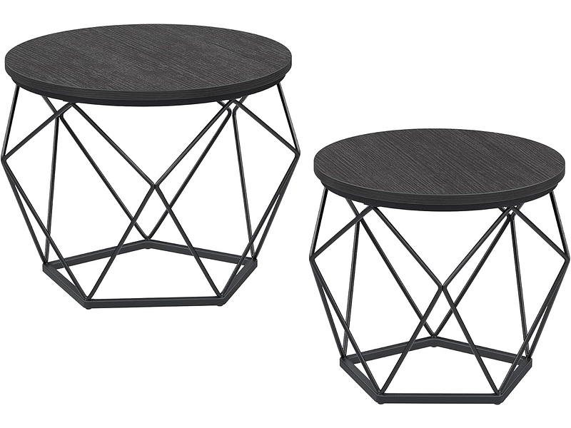 - 2er-Set kleiner runder Couchtische mit Stahlgestell