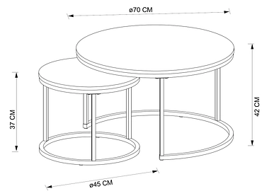 Das Couchtisch-Set ZIAD 70x70x42cm Eiche ist eine elegante Ergänzung für deine Einrichtung. Seine MDF-Platten bieten einen schönen Travertin-Effekt. Das Gestell und die runden Beine aus schwarzem Metall verleihen dem Tisch einen modernen Touch. Optimiere deinen Platz, indem du die Tische nach Belieben übereinander stapelst. Das Set besteht aus zwei Tischen mit den Maßen 70x70x42 cm und 45x45x37 cm. Weitere Farben sind erhältlich. Die matte Oberfläche der Beine vervollständigt den anspruchsvollen Look.