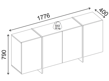 - 4 Türen, hinter denen sich großzügiger Stauraum mit internen Regalen verbirgt - perfekt für die Organisation von Geschirr oder Alltagsgegenständen.