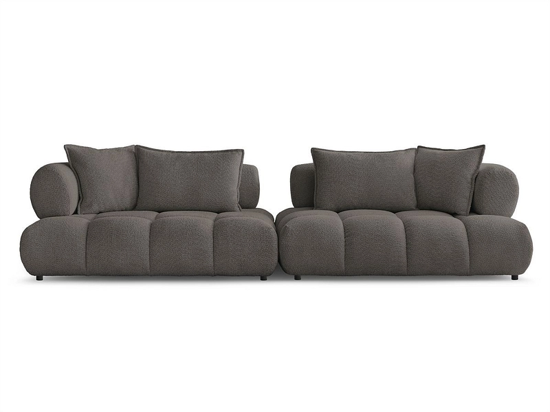 - Der Bezug des Sofas besteht aus Bouclé-Stoff mit einem Satin-Finish, ist leicht zu reinigen und wasserabweisend.